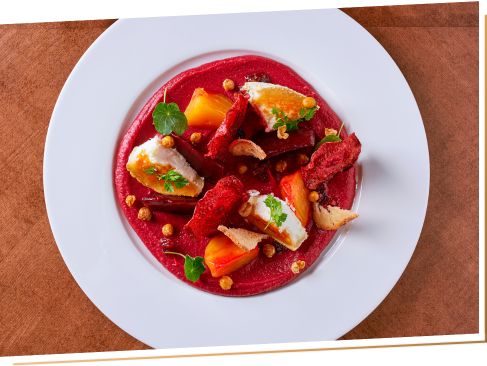 Grilled goat cheese, beetroot hummus, grilled golden beets, dried cranberries